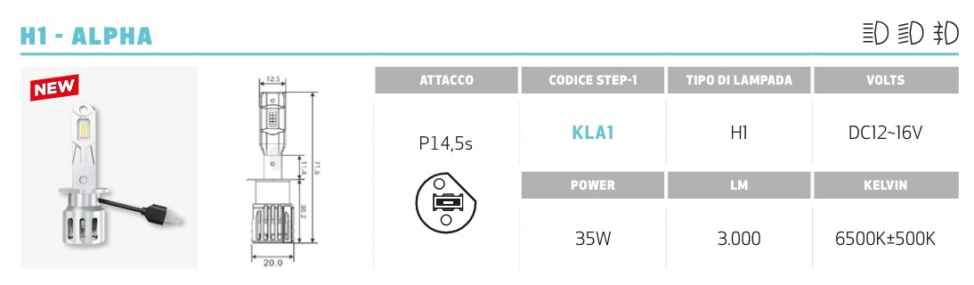 Coppia Lampade a led modello ALPHA coppia H1 attacco P14,5s power 35W 3000L 6500+500K volts DC12-16 Kit lampade a led per aumentare efficienza energetica,durata e qualita della luce,per una guida piu confortevole e sicura Per infomazioni sul prodotto, contatteci